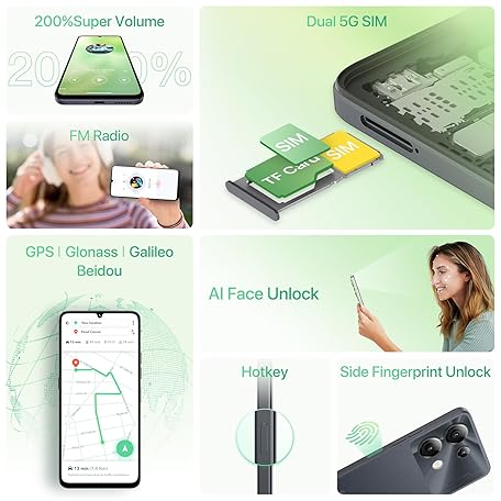 Thông tin sản phẩm UMIDIGI G9 5G Mobile Phones, Android 14 Smartphone, 12(6+6) GB +128GB/1TB, 6.75" HD+ 90Hz Display Phones, 50MP Camera, Sim Free Unlocked Mobile Phone, 5000mAh, Dual SIM/FaceID/Fingerprint/GPS, Black