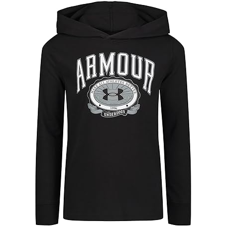 Under Armour Boys' Long Sleeve Shirt, Crewneck, Lightweight and Breathable, Black - Hooded, 6