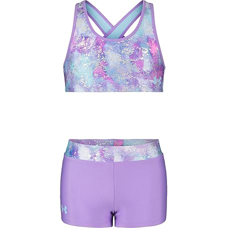 Under Armour Girls' Bikini and Shorts Swim Set, Vivid Lilac SP22, 7