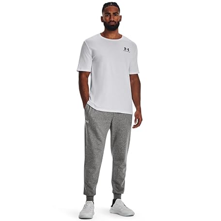 Under Armour Men's Rival Fleece Joggers, (012) Pitch Gray Full Heather / / White, Medium