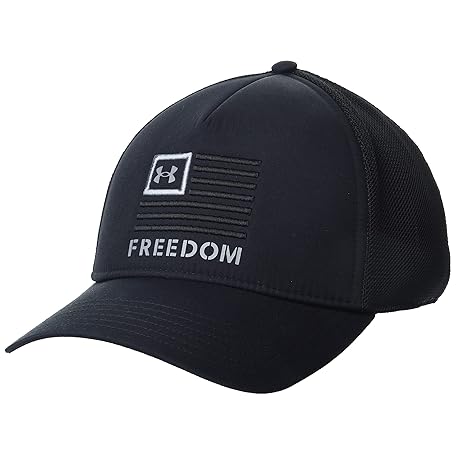 • Under Armour Men's Standard Freedom Trucker Hat, (001) Black/Black/Steel, One Size Fits All