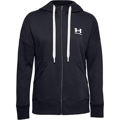 Under Armour Rival Fleece Fz Hoodie Warm-up Top, Women Black, Black / White / White (001), LG