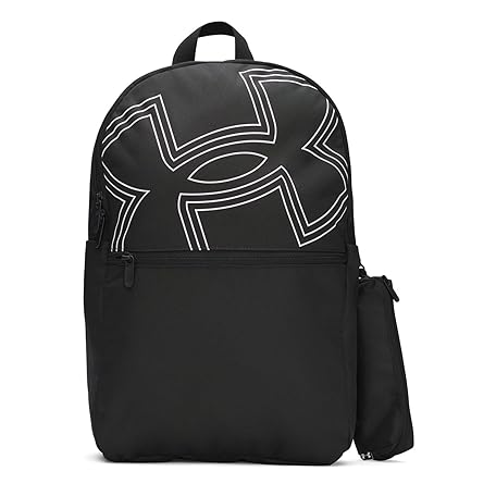 Under Armour Unisex Essential Printed Backpack, Sports Backpack with Zippered Laptop Sleeve, Versatile Schoolbag with Detatchable Pencil Case,Black/Black/White,OSFM