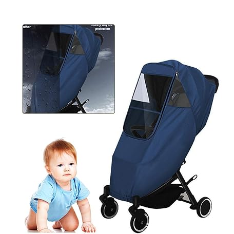 Universal Baby Carriage Rain Cover Child Stroller Windshield Umbrella Stroller Weather Shield Warm Cover Stroller Raincoat Weather Shield (Blue)