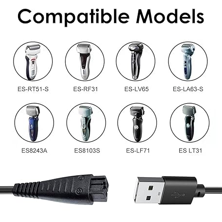 Thông tin sản phẩm Universal USB Charger for Panasonic Shavers, UK Plug 5.4V Power Supply Cord Replacement Cable Compatible with Panasonic ES-LV97 ES-LA63 RE7-51 RE7-59 RE740 RE768 ERGC20 Lasting PVC Cable (Black)