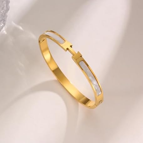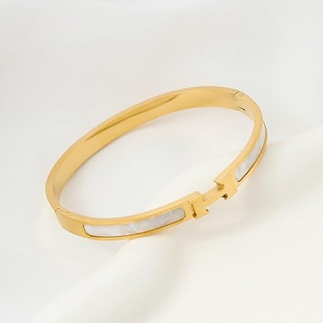 Thông tin sản phẩm Untold Stories H Dupe Gold and White Bangle, 18k Gold Plated Titanium Steel Bracelet Suitable for Women, Great Gift for Her, H Bracelet Detail, Hypoallegenic and Tarnish Free Bangle