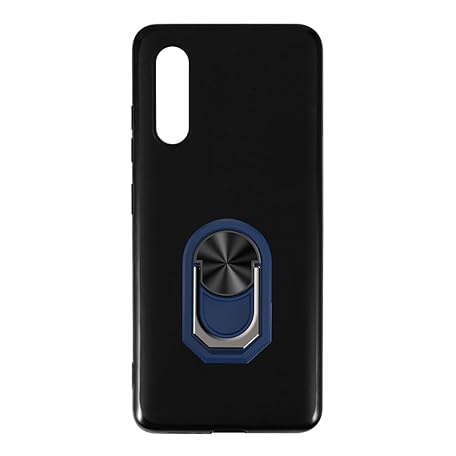 UOGNADGD Flexible Case + Ring Holder Compatible with Samsung Galaxy A41 DoCoMo Phone Shockproof Cover & Magnetic Mecha Style Finger Grip Kickstand (Black+BlueRing)