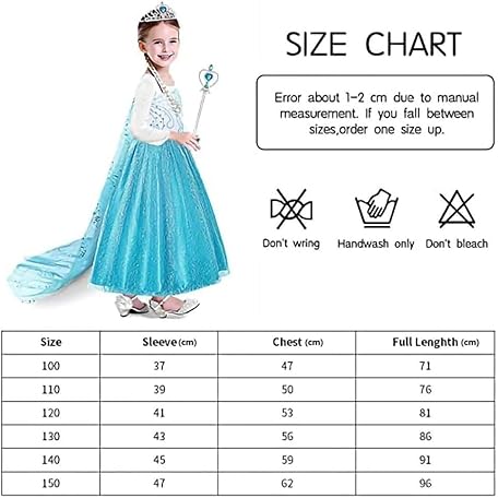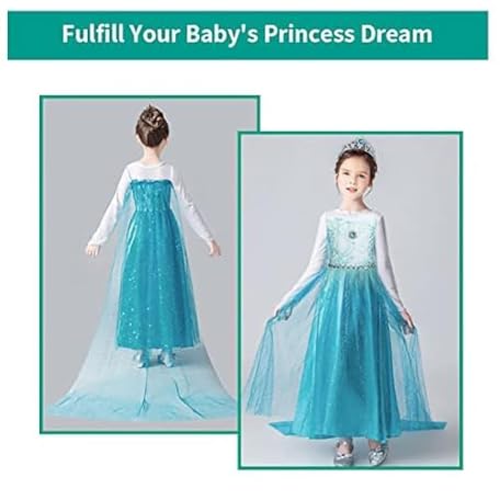 Thông tin sản phẩm URAQT Princess Dress, Princess Costume with Crown Wand Gloves and Tiara, Princess Costumes with Princess Dress Up Accessories for Girls, Kids Fancy Dress for Carnival Party Halloween Cosplay