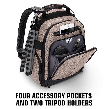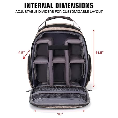 Thông tin sản phẩm USA Gear Camera Backpack, Digital Camera Neoprene Carrying Bag with Customisable Accessory Dividers, Weather Resistant Bottom, Comfortable Back Support Compatible with Canon, Nikon and More