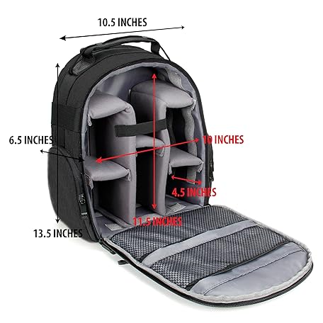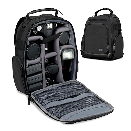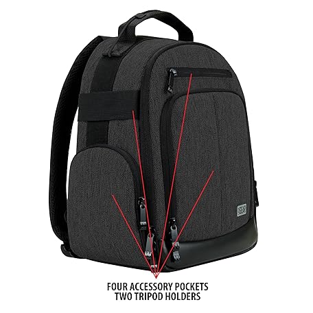 Thông tin sản phẩm USA Gear Camera Backpack, Digital Camera Neoprene Carrying Bag with Customisable Accessory Dividers, Weather Resistant Bottom, Comfortable Back Support Compatible with Canon, Nikon and More