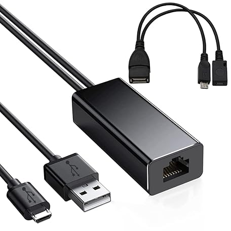 USB Ethernet LAN Adapter, HOTSO Micro USB to RJ45 Converter Computer Network Adaptor with OTG Cable for Fire TV Stick 4K Google Home Mini and More Streaming TV Sticks