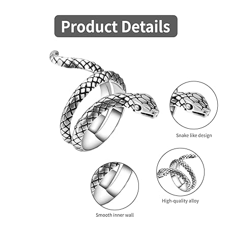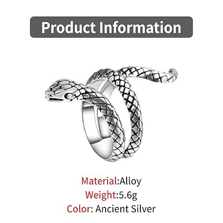 Sản phẩm UYGTHI Vintage Silver Plated Snake Ring – Punk Metal Serpent Design for Men and Women, European and American Hip-hop Style Jewelry đang được bán với giá ưu đãi là $4.4363 tại nước Anh.