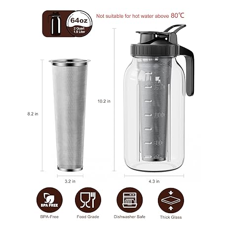 Sản phẩm VA1KENE 64oz Cold Brew Coffee Maker with Stainless Steel Mesh Filter, 2 Quart (1.9 Liter) Heavy Duty Iced Coffee Maker w/Flip Cap Lid and Spout đang được bán với giá ưu đãi là $28.558 tại nước Anh.