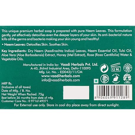 Thương hiệu Vaadi Herbals là cái tên nổi tiếng được rất nhiều khách hàng trên thế giới chọn lựa. Với kiểu dáng đẹp mắt, sang trọng, sản phẩm Vaadi Herbals Neem Soap Bar Soap Containing Pure Neem Leaves - Natural Soap Value Pack 6 X 75 Gm là sự lựa chọn hoàn hảo nếu bạn đang tìm mua một món cho riêng mình.