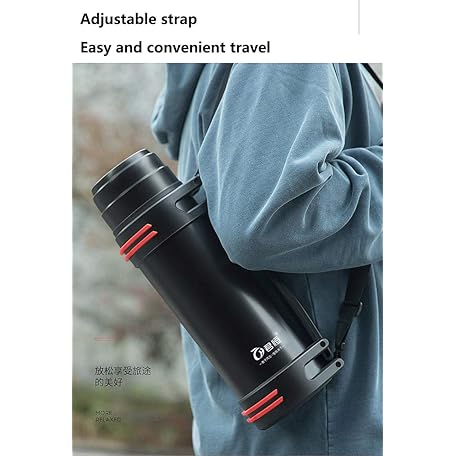 Vacuum Travel Bottle Thermos Giant Flask FOR HOT AND COLD DRINKS Stainless Steel Oversized Capacity Vacuum Insulated Thermal Reusable Water Bottle TANK pot for Home outdoor (Black,2000ml)