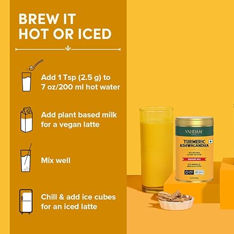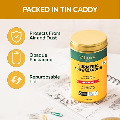 Thương hiệu VAHDAM là cái tên nổi tiếng được rất nhiều khách hàng trên thế giới chọn lựa. Với kiểu dáng đẹp mắt, sang trọng, sản phẩm VAHDAM Golden Milk Powder/Turmeric Ashwagandha Latte Mix (100g, 40 Cups) - Caffeine-Free, Powerful Curcumin, Turmeric Powder & Ashwagandha là sự lựa chọn hoàn hảo nếu bạn đang tìm mua một món cho riêng mình.