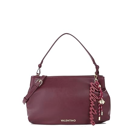 Valentino Bordeaux Leather Shoulder Bag with Adjustable Strap and Decorative Charm, Elegant Design