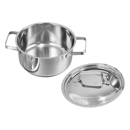 VANZACK Multifunctional 18cm Stainless Steel Soup Pot with Double Bottom and Dual Handles, Household Cooking Pot for Soup and Noodles, Compatible with Induction Cooktops