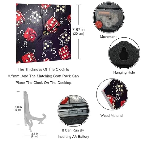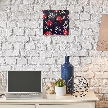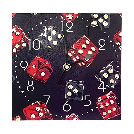 Sản phẩm VAPOKF Black Red Casino Dices Silent Quartz Wall Clocks Non-Ticking Battery Operated Clock Home Decor for Bedroom Living Kitchen Office đang được bán với giá ưu đãi là $24.7757 tại nước Anh.