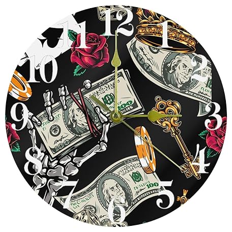 VAPOKF Casino Bills Chips Crown and Rose Wall Clock, Silent Non Ticking Quartz Battery Operated Round Wall Clocks Home/Kitchen/Office/School Clock