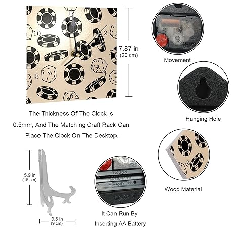 Thông tin sản phẩm VAPOKF Casino Chips and Dice Silent Quartz Wall Clocks Non-Ticking Battery Operated Clock Home Decor for Bedroom Living Kitchen Office
