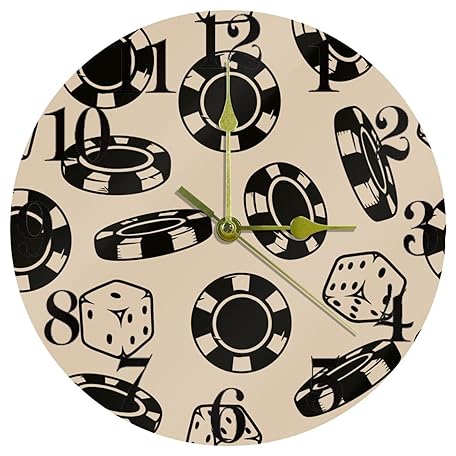 Sản phẩm VAPOKF Casino Chips and Dice Wall Clock, Silent Non Ticking Quartz Battery Operated Round Wall Clocks Home/Kitchen/Office/School Clock đang được bán với giá ưu đãi là $33.9862 tại nước Anh.