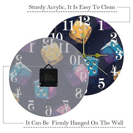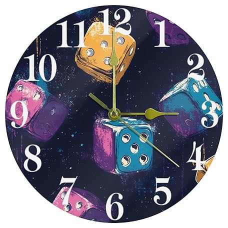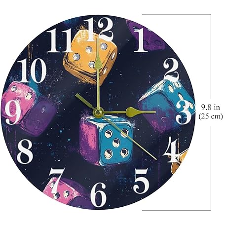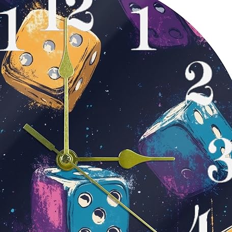 Sản phẩm VAPOKF Colorful Casino Dices Wall Clock, Silent Non Ticking Quartz Battery Operated Round Wall Clocks Home/Kitchen/Office/School Clock đang được bán với giá ưu đãi là $33.9862 tại nước Anh.