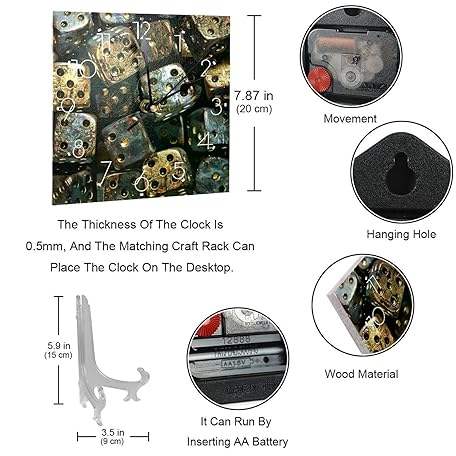 Thông tin sản phẩm VAPOKF Iron Casino Dices Silent Quartz Wall Clocks Non-Ticking Battery Operated Clock Home Decor for Bedroom Living Kitchen Office