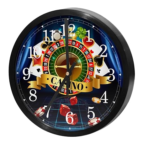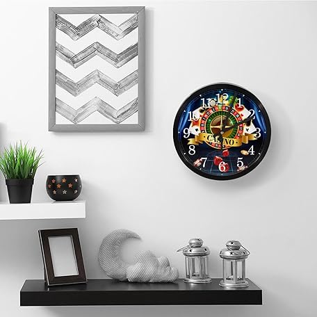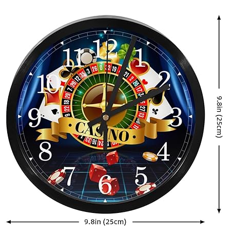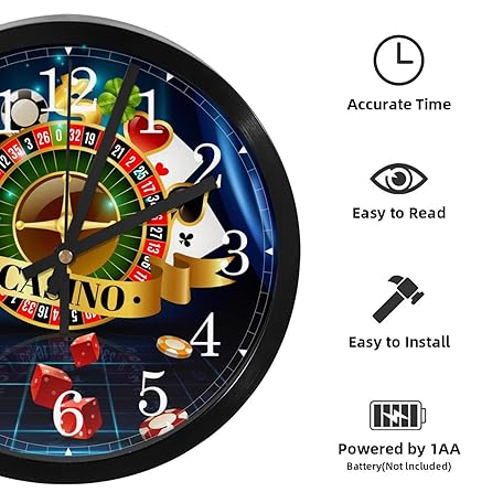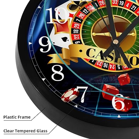 • VAPOKF Wall Clock Silent Non Ticking Quartz Battery Operated Round Wall Clocks Home/Kitchen/Office/School Clock, Casino Night Games Dice Playing Cards Symbols