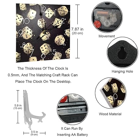 Sản phẩm VAPOKF White Casino Dices Silent Quartz Wall Clocks Non-Ticking Battery Operated Clock Home Decor for Bedroom Living Kitchen Office đang được bán với giá ưu đãi là $24.7757 tại nước Anh.