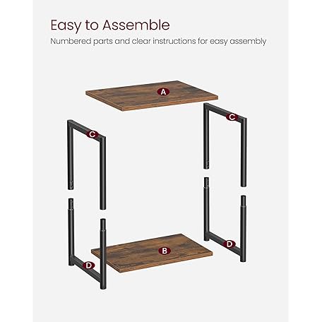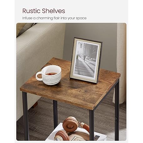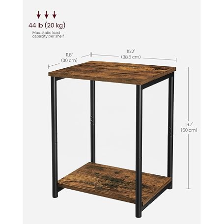 Thông tin sản phẩm VASAGLE Set of 2 Side Tables, 2-Tier Sofa Side Tables, Bedside Tables with Steel Frames, for Living Room, Bedroom, Home Office, Industrial Style, Rustic Brown and Black LET272B01