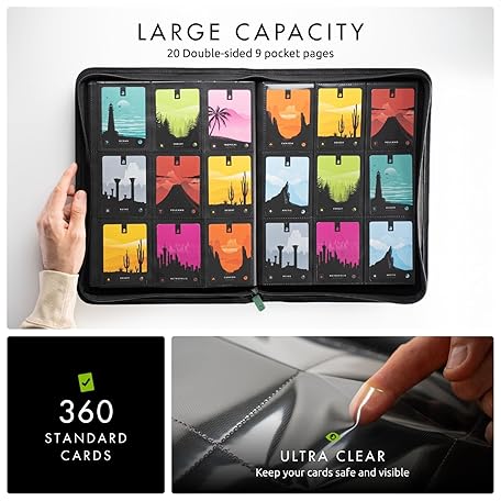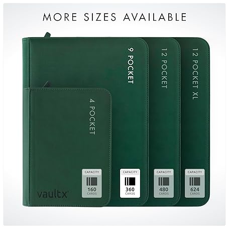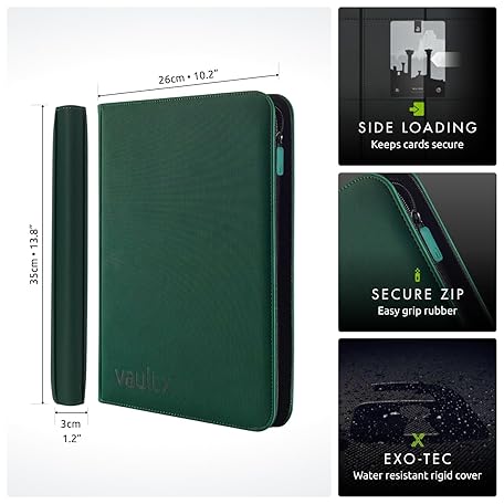 Thông tin sản phẩm Vault X 9 Pocket Trading Card Zip Binder, 360 Cards, Premium Exo-Tec Album Material, 20 Side-Loading Pages, Folder for Collectible Games, Sports, TCG (Green)