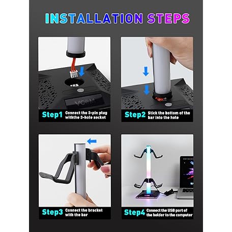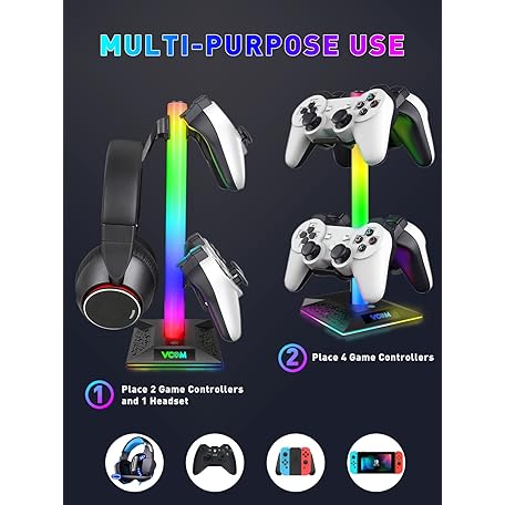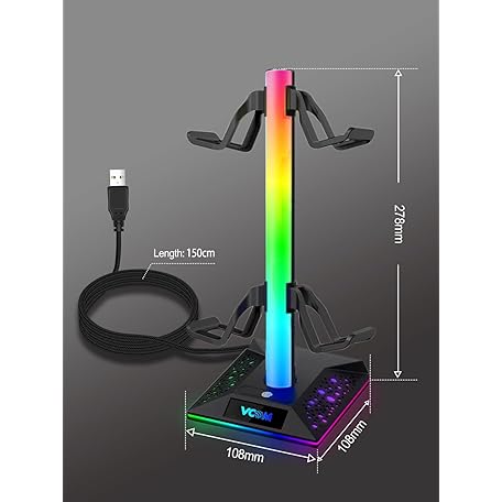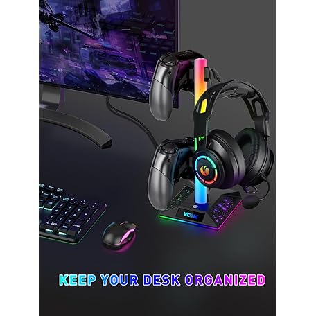 Thông tin sản phẩm VCOM RGB Headphone Stand with 10 Light Modes, Gaming Controller Holder with 2 USB Ports, PC Gaming Accessories for Desk, Universal Organizer Headpsets/Xbox PS5 Controller Stand Gamer gifts