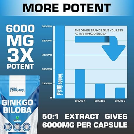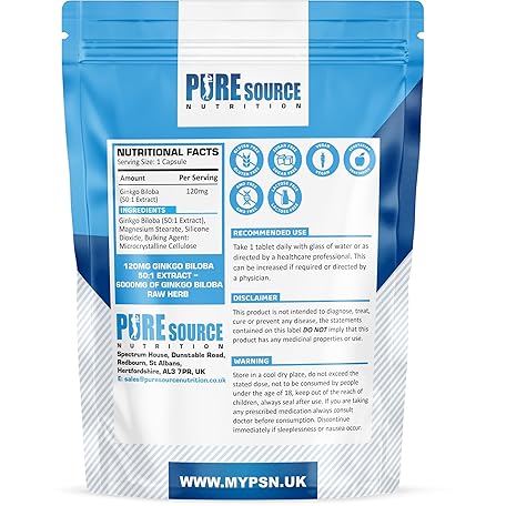 Sản phẩm Vegan Ginkgo Biloba 360 Tablets | 6000mg Supplements for Memory & Cognitive Functions | Pure Source Nutrition đang được bán với giá ưu đãi là $14.3989 tại nước Anh.