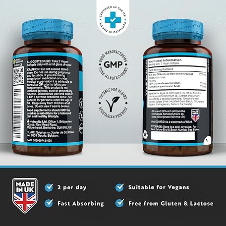 Sản phẩm Vegan High Strength Omega 3 2000mg Soft Gels - 600mg DHA & 300mg EPA per Serving - Plant-Based Omega 3 Softgels Derived from Sustainable Algal Oil - 60 Vegan Softgels - Made in The UK by Nutravita đang được bán với giá ưu đãi là $27.5988 tại nước Anh.