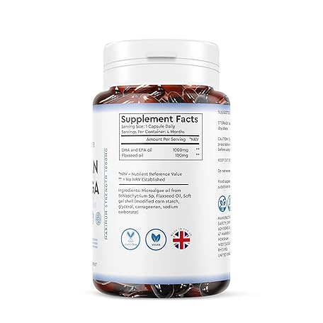 Sản phẩm Vegan Omega 3 6 9, DHA & EPA Oil - 1000mg - 4 Month Supply 120 Soft gels - Naturaly sourced Algae Oil - High Strength đang được bán với giá ưu đãi là $22.0071 tại nước Anh.