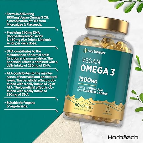 Sản phẩm Vegan Omega 3 DHA from Algae Oil 1500mg | 60 Softgels | High Strength 450mg of ALA and 240mg of DHA Per Serving | by Horbaach đang được bán với giá ưu đãi là $14.3771 tại nước Anh.