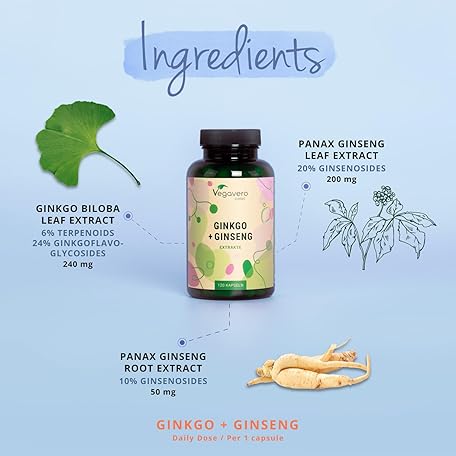 Sản phẩm Vegavero Ginkgo Biloba 12000 mg & Panax Ginseng 2000 mg | High Strength Extracts | NO Additives, Lab-Tested | 120 Capsules (4 Month Supply) | Vegan đang được bán với giá ưu đãi là $33.0815 tại nước Anh.