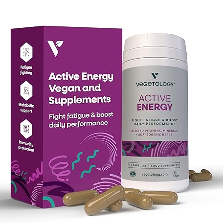 Vegetology B Complex and Rhodiola Rosea, Energy Supplement, Including Iron, Vitamin C, Multivitamin Supplement with Adaptogens, Caffeine Free, Vegan, 60 Count