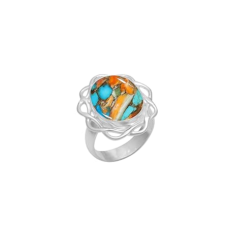 Veracity Jewelry Oyster Copper Turquoise Rings For Women - 925 Sterling Silver Rings - Kingman Mojave Mohave Spiny Oyster Turquoise Healing Meditation Jewelry - Multi Color Turquoise Jewelry - VSR-863