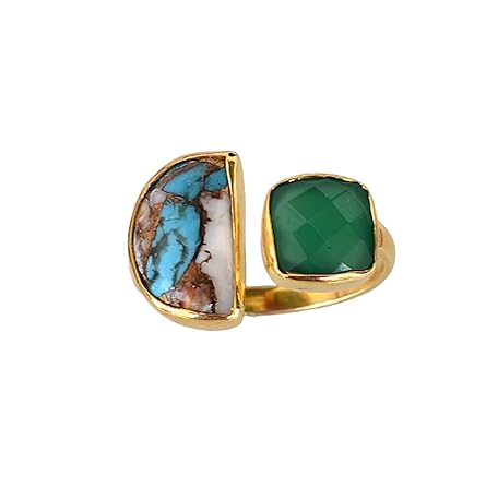 Veracity Jewelry Oyster Spiny Turquoise and Green Onyx Crescent Half Moon and Cushion Shape Multi Color Gold Filled Ring for Women,Oyster Copper Turquoise Gold Fashion Statement Ring for Girls -VR-148
