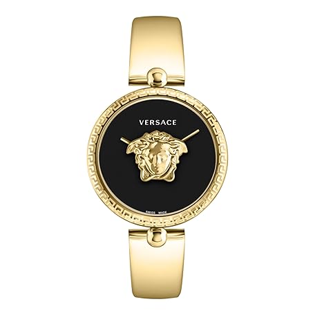 Versace Women's Palazzo Empire Collection Luxury Ladies Watch with Gold Strap, Gold Case, Black Dial, Quartz Movement, Water Resistant