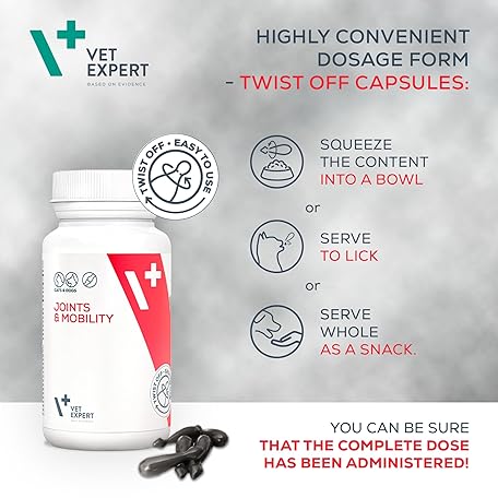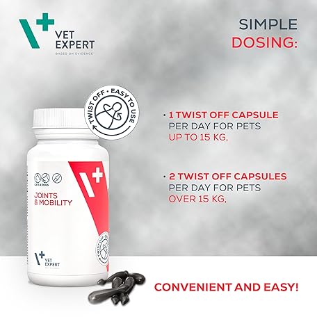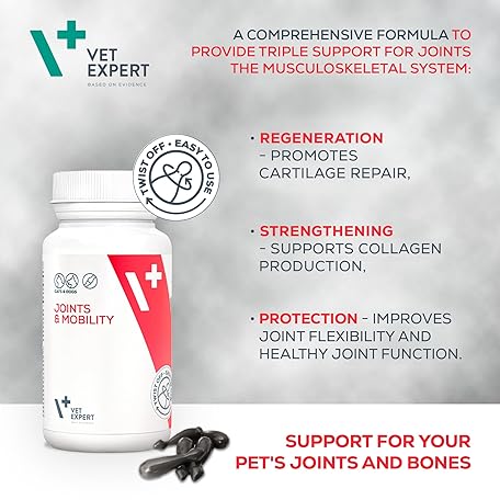 Thông tin sản phẩm Vet Expert Joints & Mobility Supplement for Dogs and Cats – Supports healthy joints with Glucosamine, Chondroitin, Hyaluronic Acid, Vitamins C & E, and Manganese – 30 Twist-Off Capsules