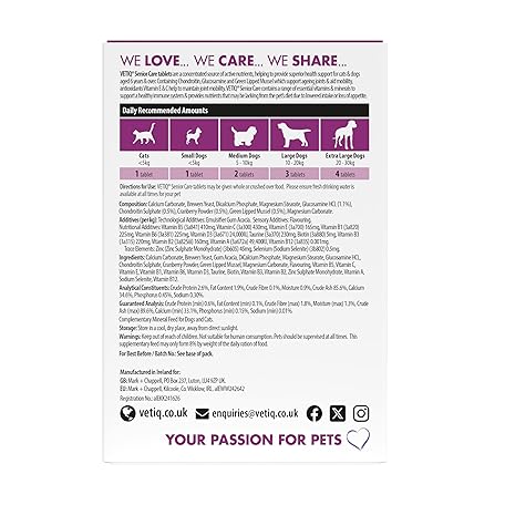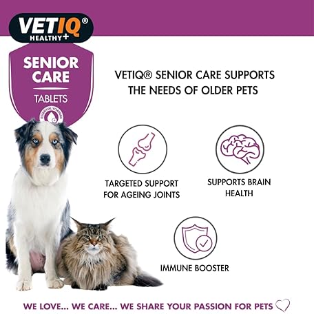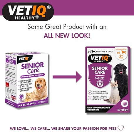 Thông tin sản phẩm VETIQ Senior Care Supplement For Cats & Dogs, Health Support For Senior Pet's Joints & Maintains Immune & Brain Health, 45 Tablets (Pack of 1)