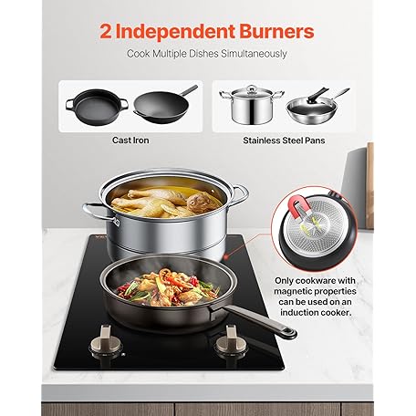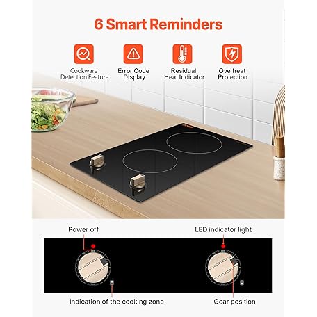 Thông tin sản phẩm VEVOR Induction Cooktop, 3500W Electric Countertop Burner, 2 Burner Knob Control Stove, Built-in Induction Cooktop with 12 Temperature Settings, Glass Surface, Auto Shut-Off