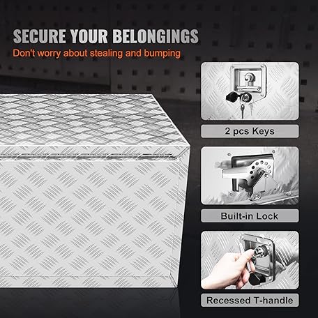 Thông tin sản phẩm VEVOR Underbody Truck Box, 60"×24"×24" Pickup Storage Box, Heavy Duty Aluminum Diamond Plate Tool with Lock and Keys, Waterproof Trailer Storage Box with T-Handle Latch for Truck, Van, Trailer