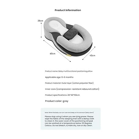 Thông tin sản phẩm ViaForest Baby Pillow, Baby Breastfeeding Pillow, Anti Reflux Breastfeeding Pillow (to reduce spitting), Anti Reflux Pillow, Portable and Washable (With protective belt)