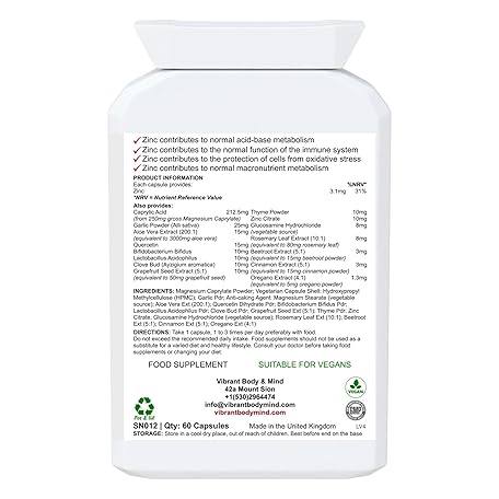 Thông tin sản phẩm Vibrant Detox - Liver Detox and Colon Cleanse with Caprylic Acid, Probiotics, Quercetin - Heavy Metal Detox - 100 Capsules Made in The UK