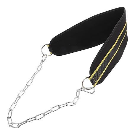 VICASKY Weightlifting Dip Belt Chain for Gym Workout Adjustable Muscle Dip Belt for Strength Training, Squat, Pull Ups Black Yellow Striped Fitness Accessory Lumbar Support for Men and