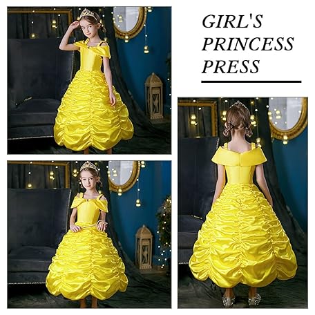Sản phẩm Vicloon Princess Belle Costume Dress, Little Girl Princess Dresses Fancy Party Dress with Crown Wand Gloves Necklace Ring and Earrings for Cosplay đang được bán với giá ưu đãi là $25.3643 tại nước Anh.